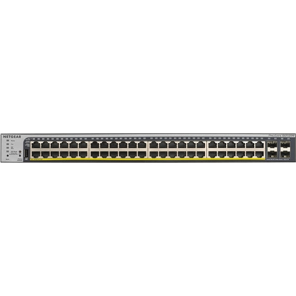 48 Ports - Manageable - 2 Layer Supported - Modular - 4 SFP Slots - Twisted Pair, Optical Fiber - Rack-mountable - Lifetime Limited Warranty General Information Manufacturer: Netgear, Inc Manufacturer Part Number: GS752TPP-100NAS Brand Name: Netgear Product Model: GS752TPP Product Name: GS752TPP Ethernet Switch Marketing Information: All ports PoE+ with up to 760W PoE budget - Select your new network engine! As a leading provider of network equipment for SMBs, NETGEAR understands the importance of providing a great choice of PoE port counts and power budgets that can adapt to your business' needs, whether in the hospitality, catering, education or retail domains. The GS728TPv2, GS728TPPv2, GS752TPv2 and GS752TPP Gigabit Ethernet Switches with PoE+ and 4 SFP Ports join the NETGEAR Standalone Smart Managed Pro Switches family, adding full 24 and 48 port PoE+ support for deployment of modern high-power PoE devices. Cautious spender organizations can now deploy denser PoE+ devices connected to a cost-effective switch, with a reasonable PoE power budget of 190W over 24-port, or 380W over 48-port. Organizations who buy infrastructure for the long term and want future proofing for the unforeseeable can now select a switch with a PoE power budget of 380W over 24-port, or 760W over 48-port providing more headroom. Temperature- and load-based fan-speed control combines accurate monitoring with minimized system acoustic noise: the GS728TPv2 supports quiet rack mounting operation with a maximum of 31dBA even at full PoE power with traffic on all ports and 25C (77F) ambient. Following the same measurements, the GS728TPPv2 is rated at 35dBA, the GS752TPv2 at 38dBA and the GS752TPP at 43dBA. Product Type: Ethernet Switch Interfaces/Ports Total Number of Network Ports: 48 Uplink Port: Yes Modular: Yes Stack Port: No Port/Expansion Slot Details: 4 x Gigabit Ethernet Expansion Slot Port/Expansion Slot Details: 48 x Gigabit Ethernet Network Media & Performance Media Type Supported: Optical Fiber Media Type Supported: Twisted Pair Ethernet Technology: Gigabit Ethernet Network Technology: 10/100/1000Base-TX Network Technology: 1000Base-X I/O Expansions Number of Total Expansion Slots: 4 Expansion Slot Type: SFP (mini-GBIC) Shared SFP Slot: No Number of SFP Slots: 4 Network & Communication Layer Supported: 2 Management & Protocols Manageable: Yes Power Description Power Source: Power Supply Redundant Power Supply Supported: No Physical Characteristics Form Factor: Rack-mountable Height: 1.7" Width: 17.3" Depth: 12.4" Weight (Approximate): 11.08 lb Miscellaneous Country of Origin: China Warranty Limited Warranty: Lifetime
