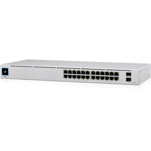 The Ubiquiti Networks UniFi 24-Port Gigabit PoE+ Managed Switch provides high-performance switching with enterprise-grade features in a compact 1U rackmount or desktop design.