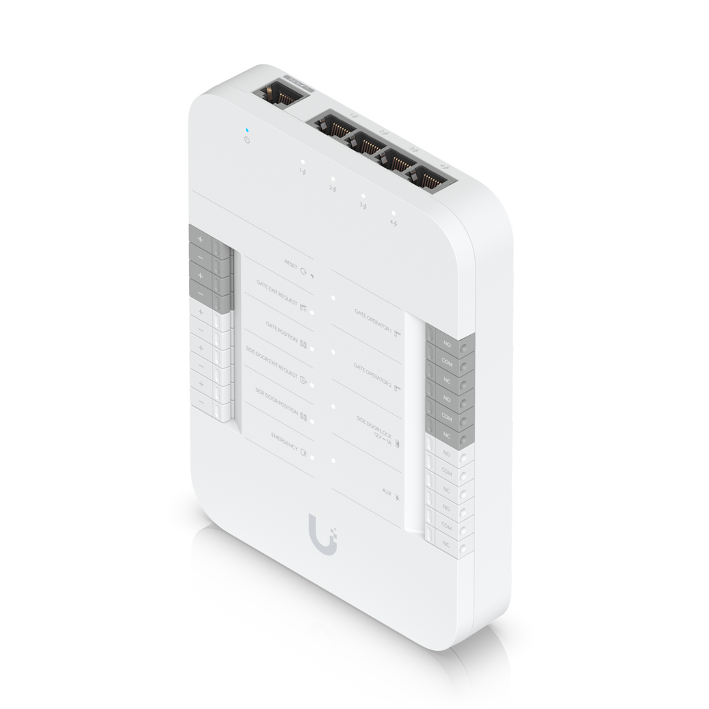 The Ubiquiti UniFi Access UA-HUB-GATE provides secure and intelligent gate and side door access control. With PoE++ input, multiple PoE outputs, and integration with UniFi Access readers, intercoms, and cameras, it delivers a scalable and reliable entry management solution for both commercial and residential environments.