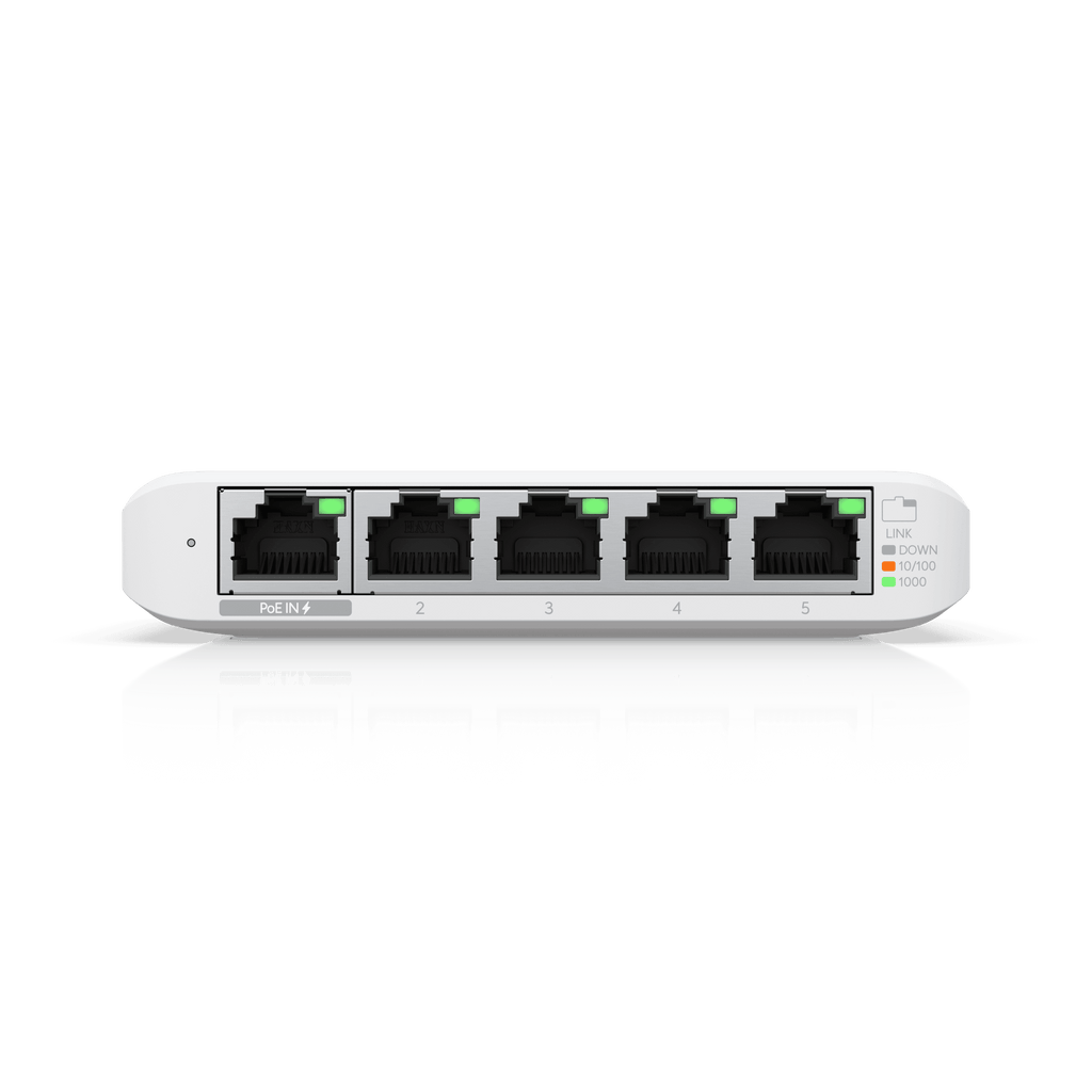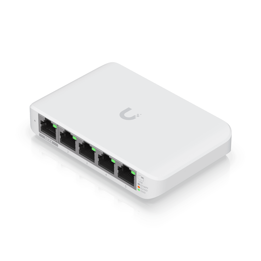 The Ubiquiti USW-FLEX-MINI is an ultra-compact 5-port Gigabit managed switch designed for efficient and silent network expansion in both home and professional setups. Delivering a full 10 Gbps switching capacity—even at just 2.5 W power consumption—this switch supports robust Layer 2 features, including VLANs, port isolation, mirroring, and more.
