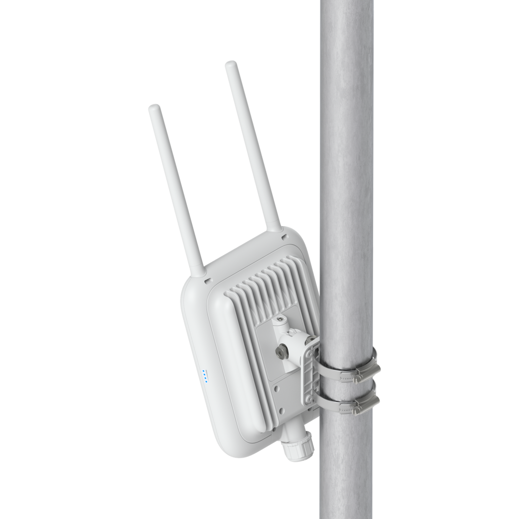 The AP is powered by a 2.5 GbE PoE+ uplink, reducing cable clutter while delivering reliable data and power through a single connection. Its rugged UV-stabilized polycarbonate and aluminum housing is IP67-rated, ensuring durability against rain, dust, and extreme temperatures. With included wall and pole mounting options, it installs effortlessly in any outdoor setting.