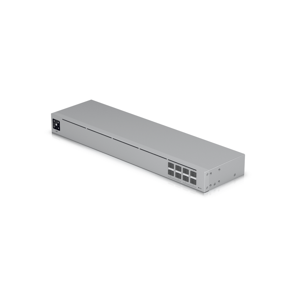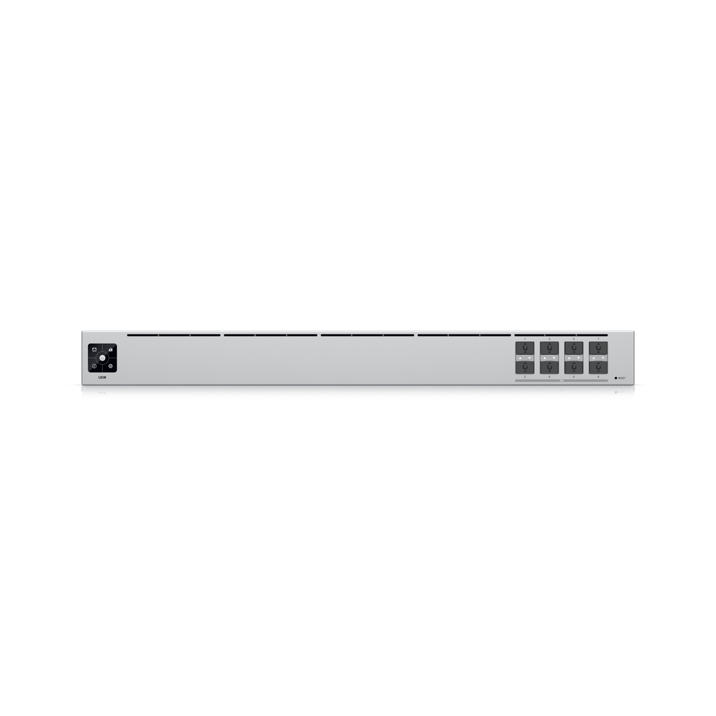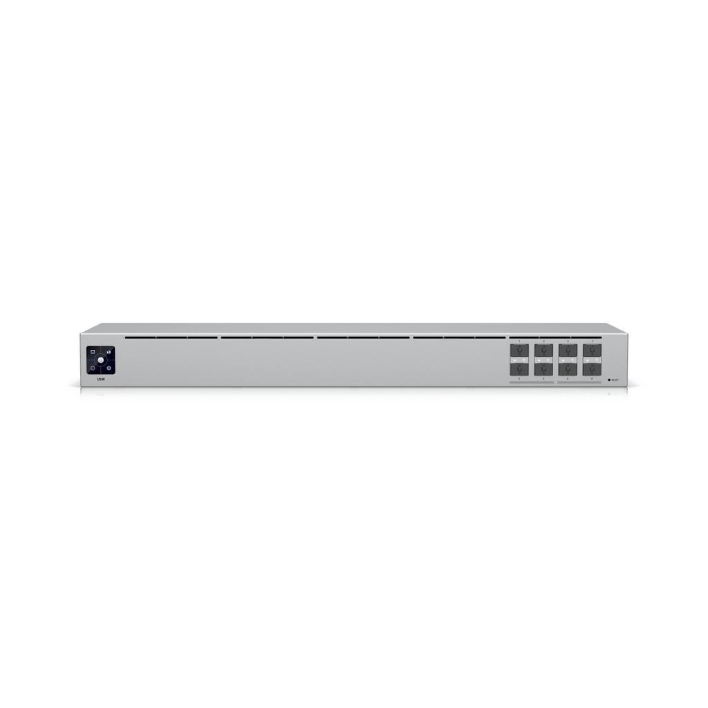 Meta Title: UniFi Aggregation Switch 8-Port 10G SFP+ Managed Meta Description: Ubiquiti UniFi Aggregation Switch with 8× 10G SFP+ ports, 160Gb/s switching, fanless steel design, 1.3" touchscreen, and UniFi Controller management.