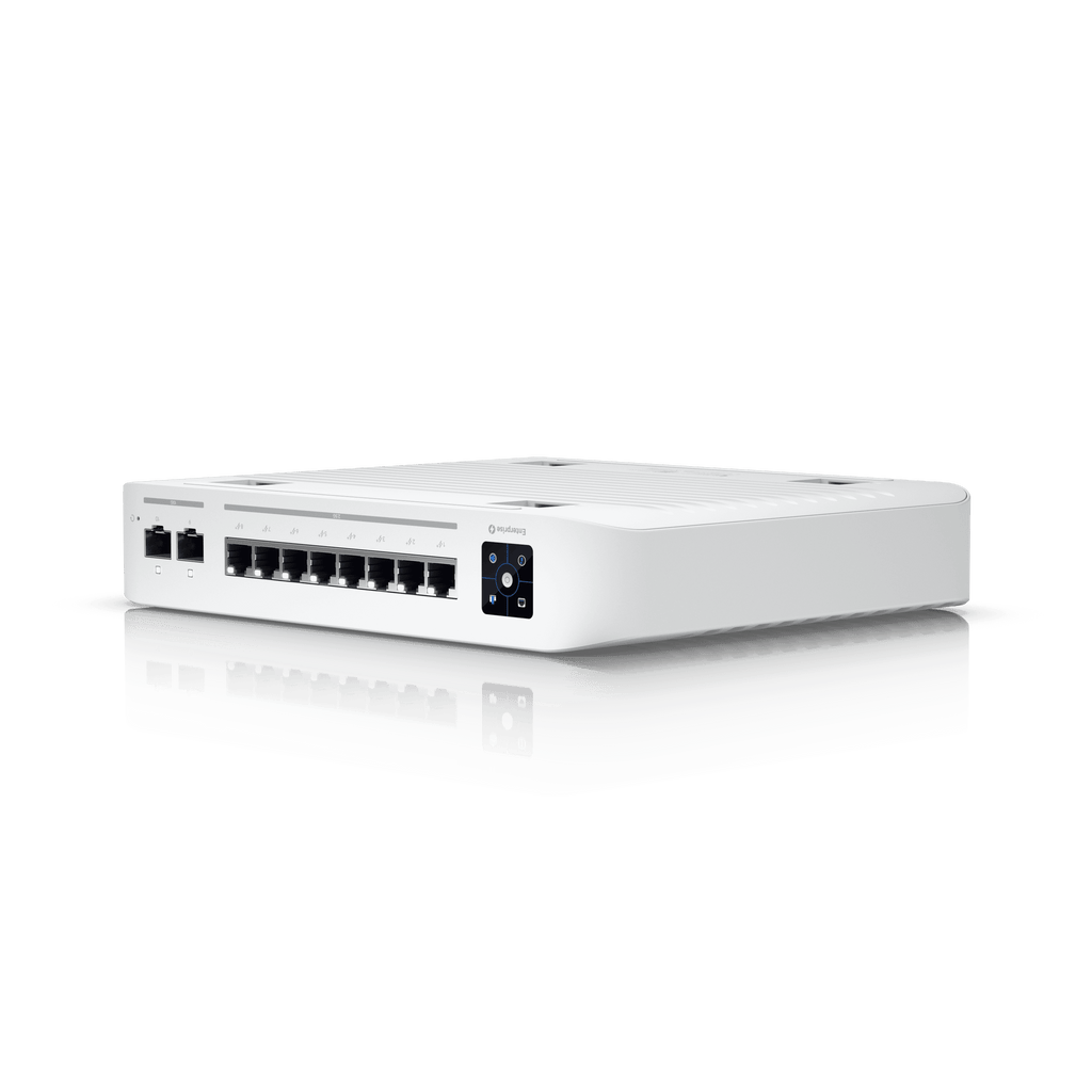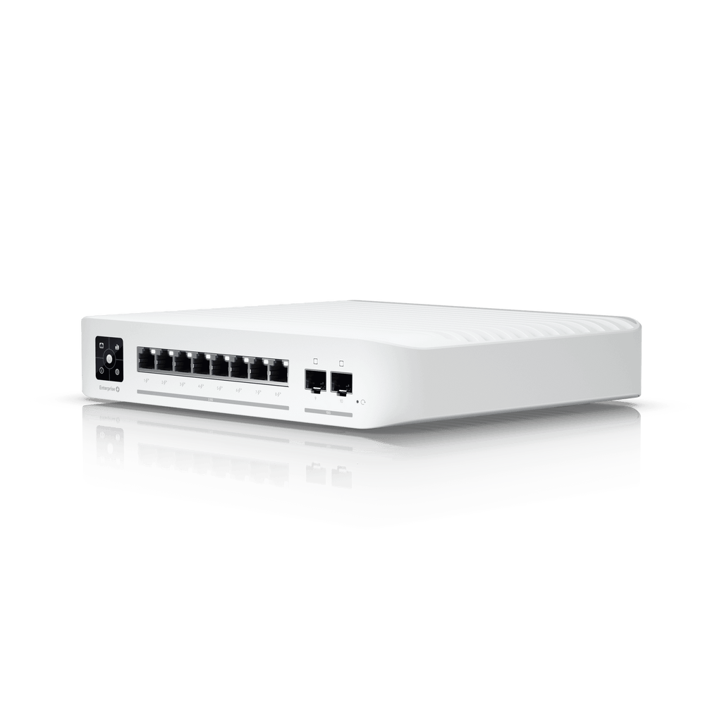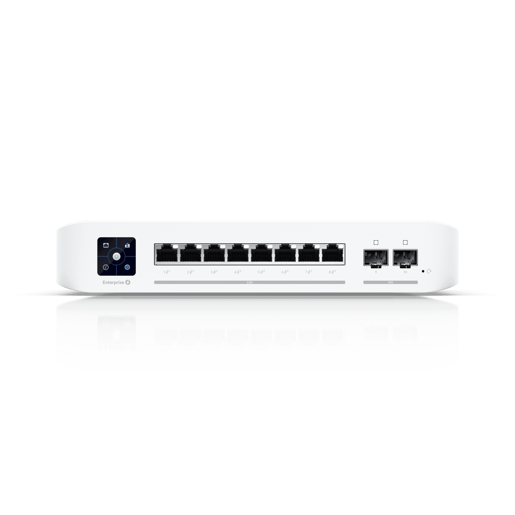 Expand your business network with the UniFi Switch Enterprise 8, an advanced 8-port 2.5Gb PoE+ managed switch with dual 10Gb SFP+ uplinks. Delivering high power, ultra-fast throughput, and intelligent management features, it's perfect for powering access points, IP cameras, and VoIP systems while keeping your network scalable and silent.