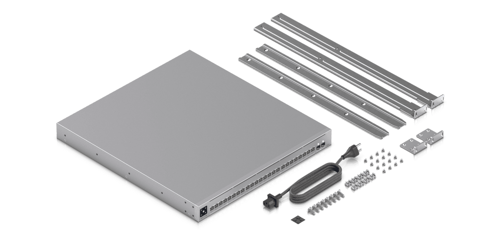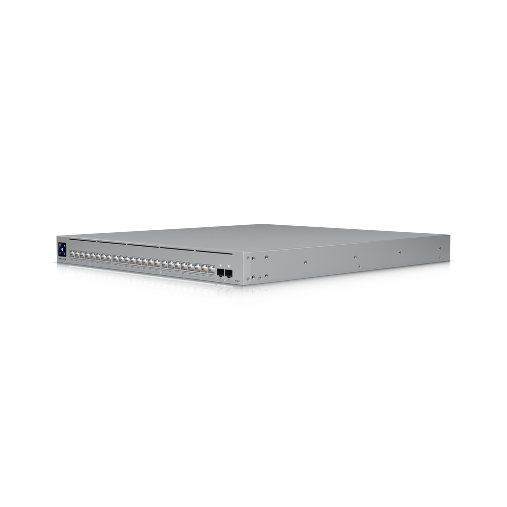 The Ubiquiti Networks Pro XG 24 is an advanced enterprise-grade managed Layer 3 switch designed to handle the most demanding network infrastructures. Featuring 24 multi-gig PoE+++ ports with 2.5G and 10G support, this switch powers devices such as access points, IP cameras, and VoIP phones with up to 90W per port and a total PoE budget of 720W. In addition, dual 25G SFP28 uplink slots provide lightning-fast fiber connectivity for maximum flexibility and scalability in modern data networks.